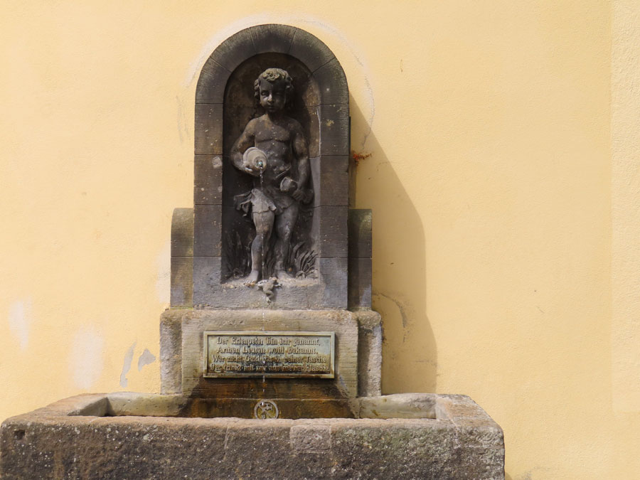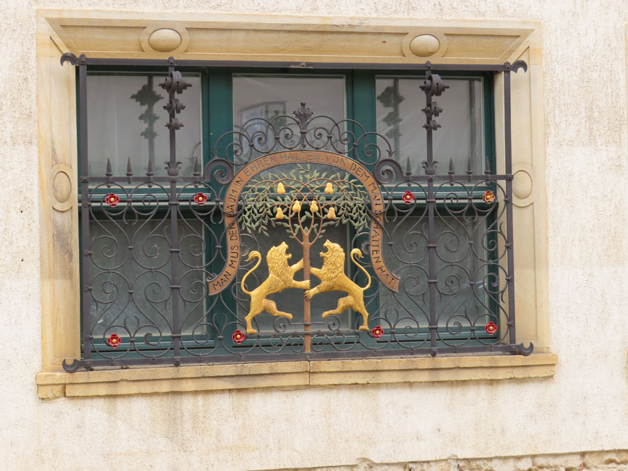 eingebaut. Darunter befindet sich das Stadtwappen.