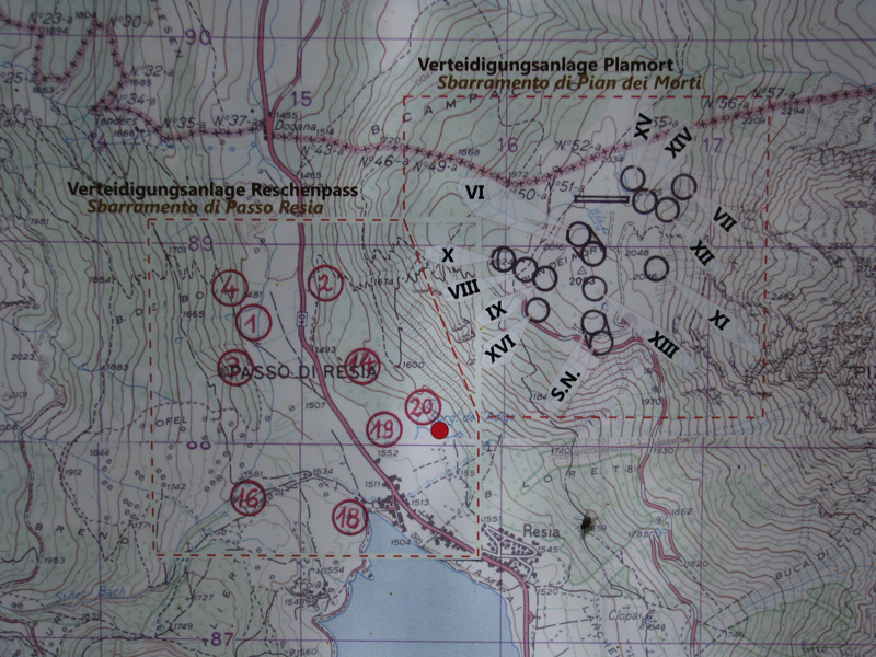 Ich bin gerade am Bunker 20. Hier hat Italien sich wild eingegraben gegen die gefährlichen Schweizer und Österreicher.