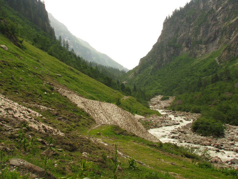Und mit diesem Lawinenrest endet der Wanderweg. Hingekommen wäre ich eh nicht und - nix als Wolke.