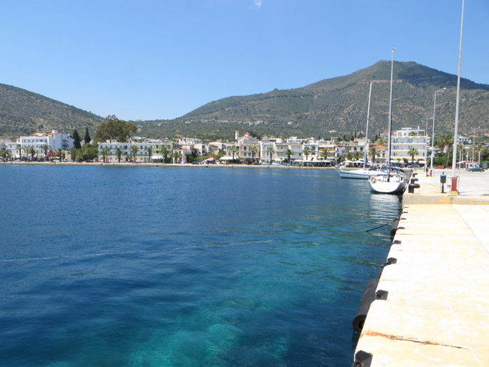 Und dann steuern wir den einzigen Campingplatz im Umkreis von 30 km an und sehen dabei schon mal unser morgiges Ziel: Methana.
