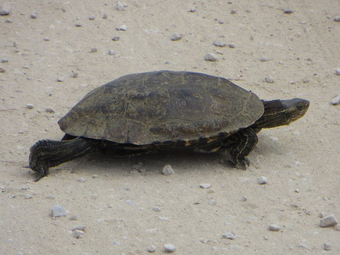Dafür musste ich auf dem Rückweg mal eben anhalten. Schildi schlich über die Straße.
