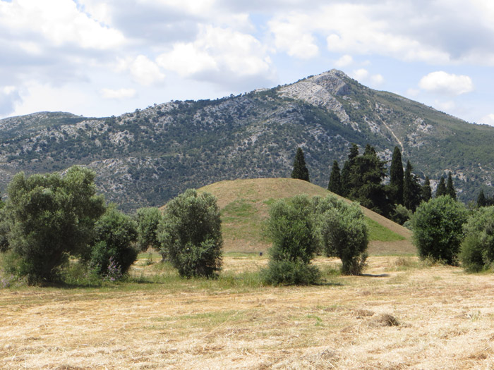 Im archäologischen Gelände sieht man praktisch nur diesen Grabhügel für die gefallenen Sieger,
