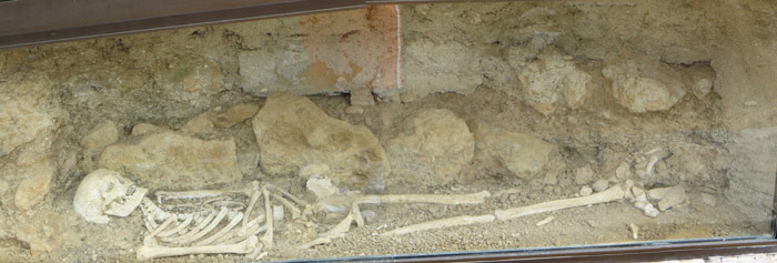 Gleich am Anfang stört man die Totenruhe eines Christen, der hier im 6. Jahrhundert beerdigt wurde.