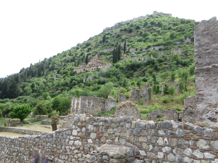 In Mystras hat man das Fluchtproblem etwas besser gelöst als in Akrokorinth, denn die Häuser lagen am gleichen Hügel wie die Burg.