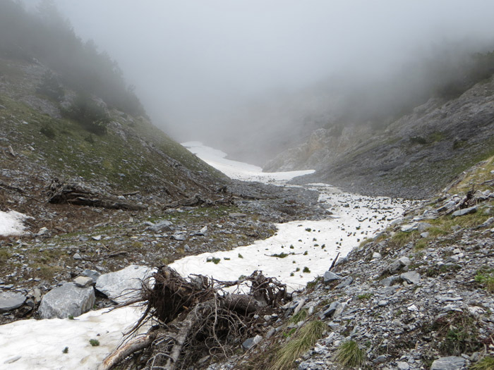 Das ist jetzt nicht der Olymp-Gletscher, den gibt es nämlich nicht. Aber schon noch deutliche Schneereste.