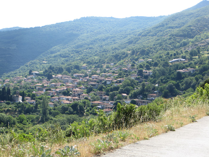 Also fahre ich am Ausgang des Tales nach Ambelakia hoch. Der Ort liegt idyllisch und ziemlich weit oben.