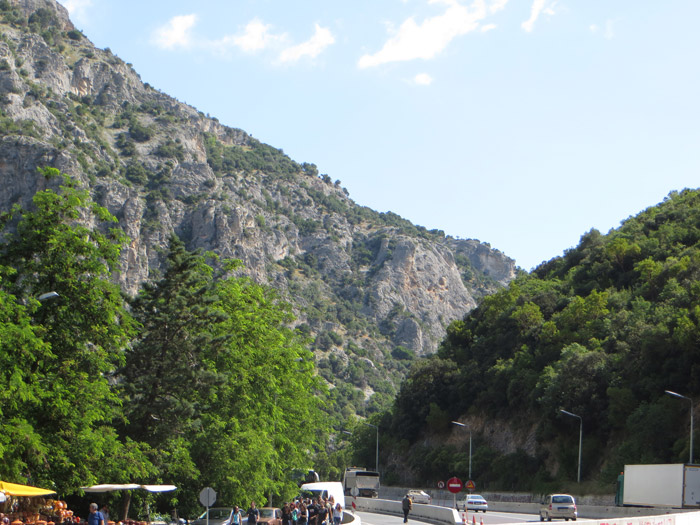Und das ist der Beginn des Tembi-Tals. Hier musste der Fluss Pinios, nachdem er die Meteora-Felsen freigelegt hat,