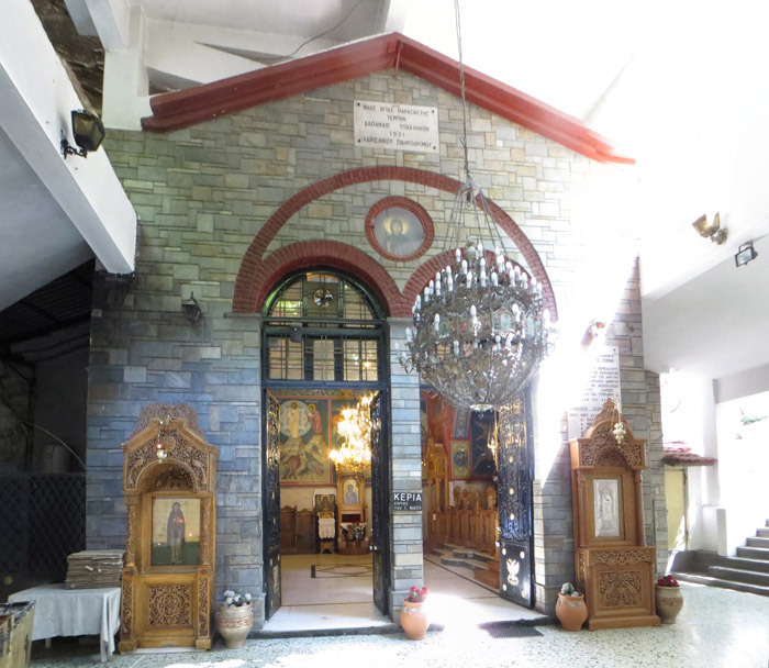 Wenn man da durch den Gang in der Mitte weitergeht, dann erreicht man die Kirche vom Kloster Agia Paraskevi.