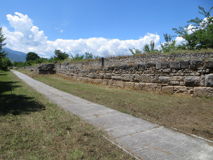 Bereits innerhalb des archaeologischen Bereichs trifft man auf diese Mauer, die die Siedlung bei den Tempeln umschließt.
