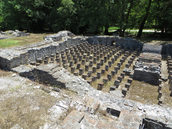 Und im großen Bad kann man die Fußbodenheizung (meiner Kenntnis nach eine römische Erfindung) sehen,