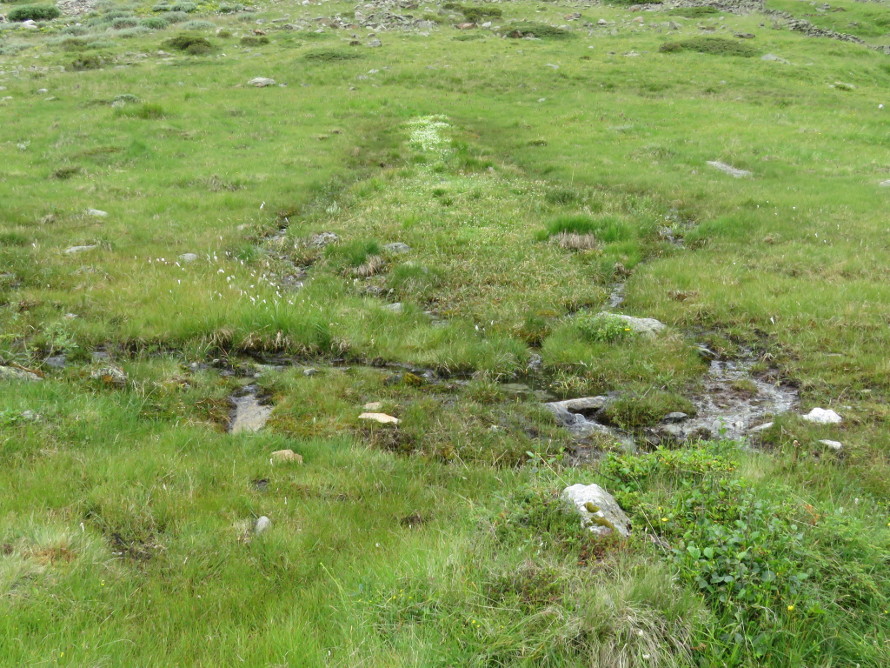 Wasser und Moorpflanzen siedeln sich an und bilden langsam ein Moor aus.