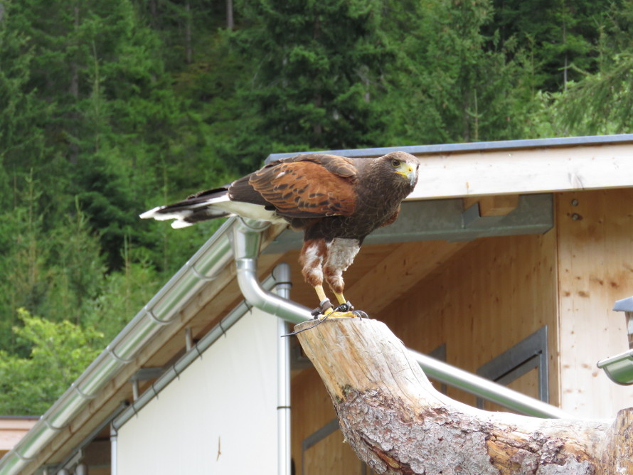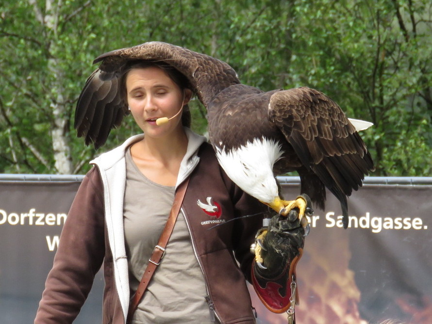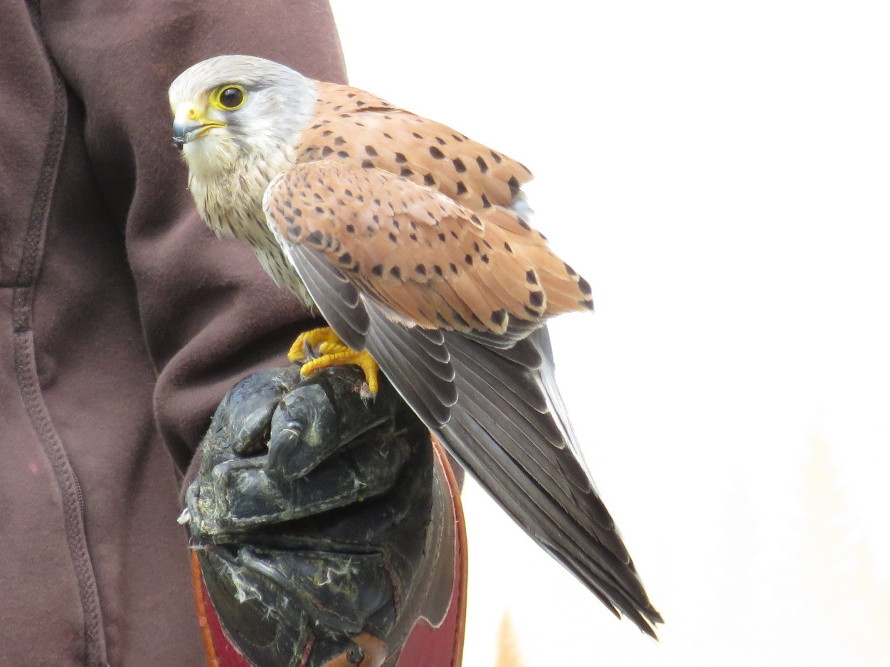 Krallen sind scharf. Daher die dicken Lederhandschuhe.