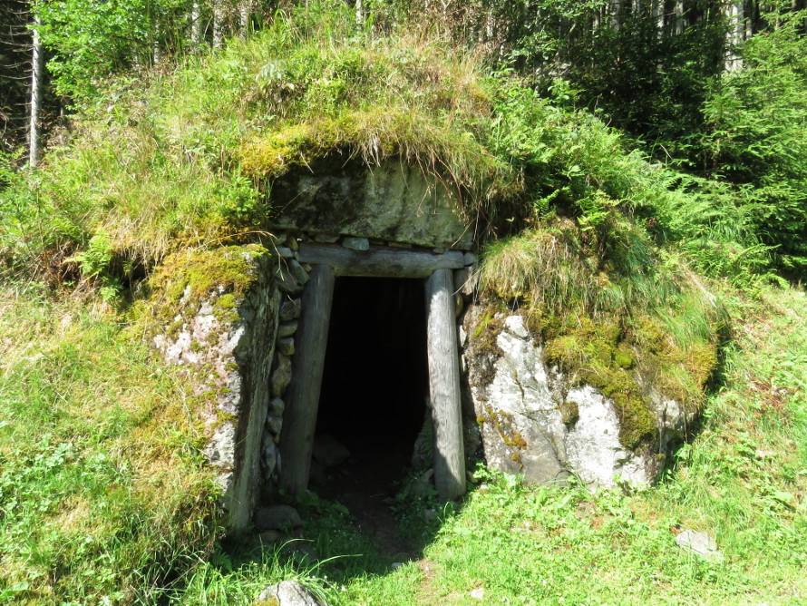 Stollen dar, wie er hier in einem Steinhaufen rekonstruiert wurde.