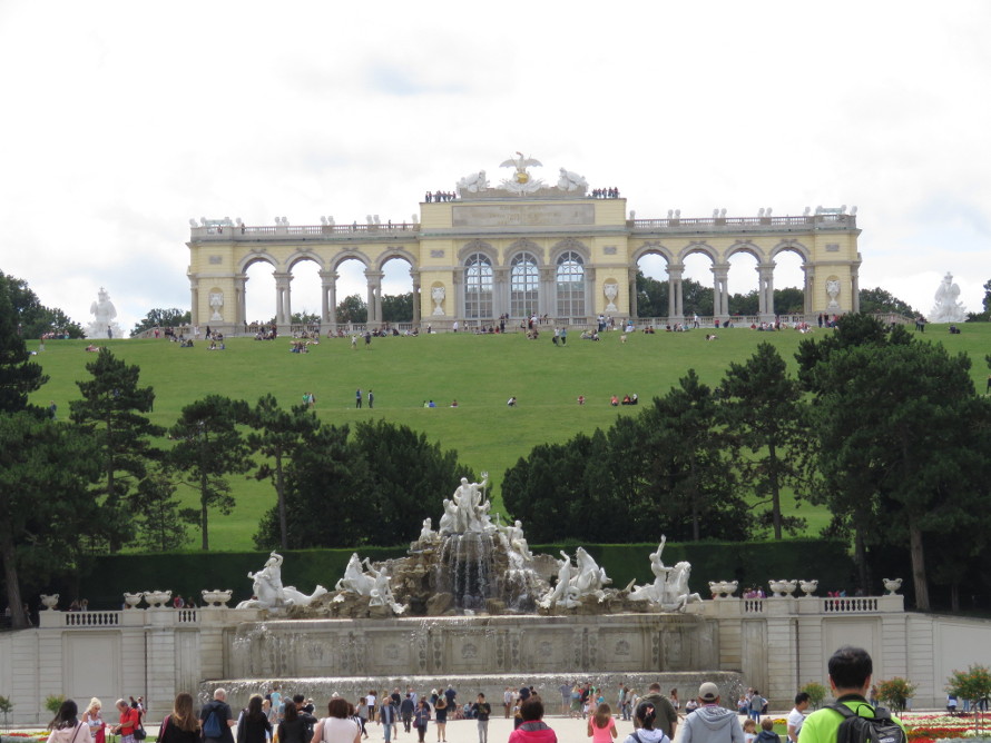 auf die Gloriette und dazwischen der Neptun-Brunnen.