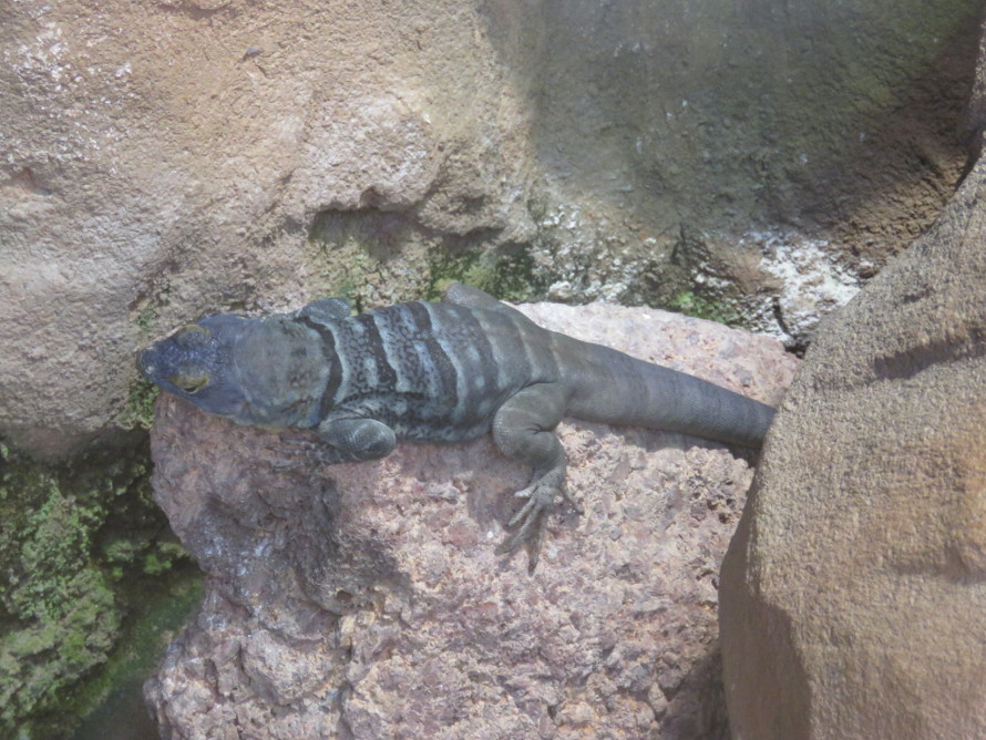 blaue Felsenleguan (etwa 20 cm groß) rum.