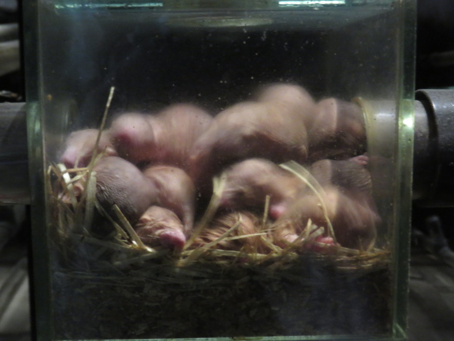 die Nacktmulle direkt an der Scheibe. Ist nichts für Fotografen!