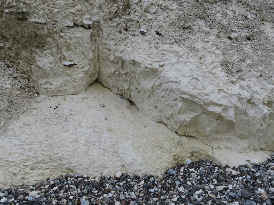 Feuersteinknollen zu erkennen, die im Kalk eingelagert sind.
