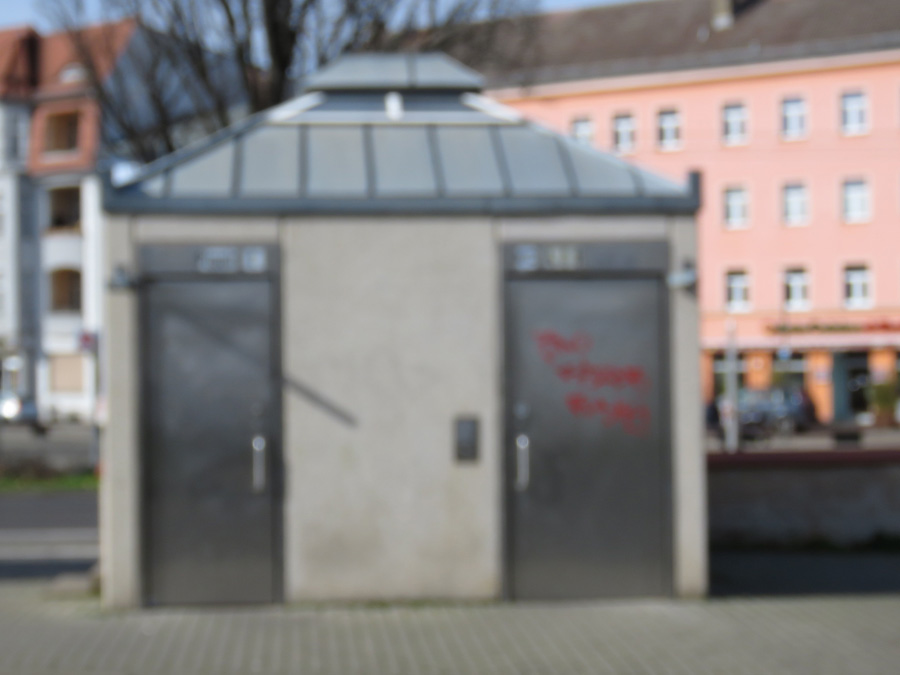 Häuschen. Scheint dringend gewesen zu sein, dass das Foto derart