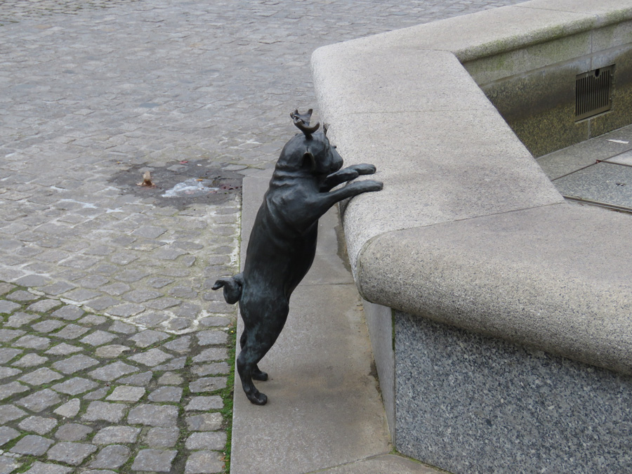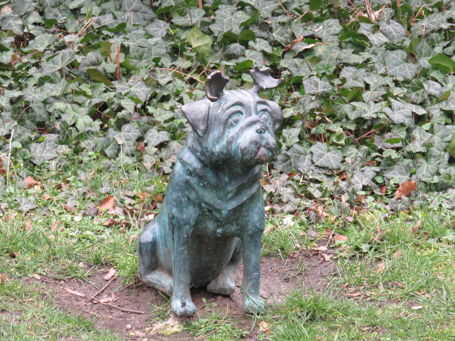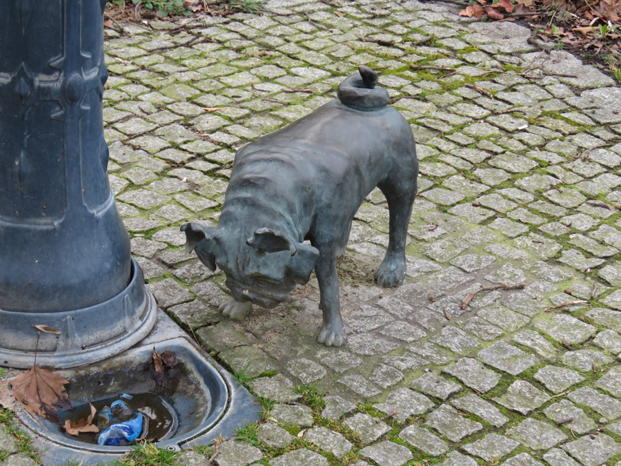 in vielen Grünanlagen der Stadt einen Mops aufgestellt.