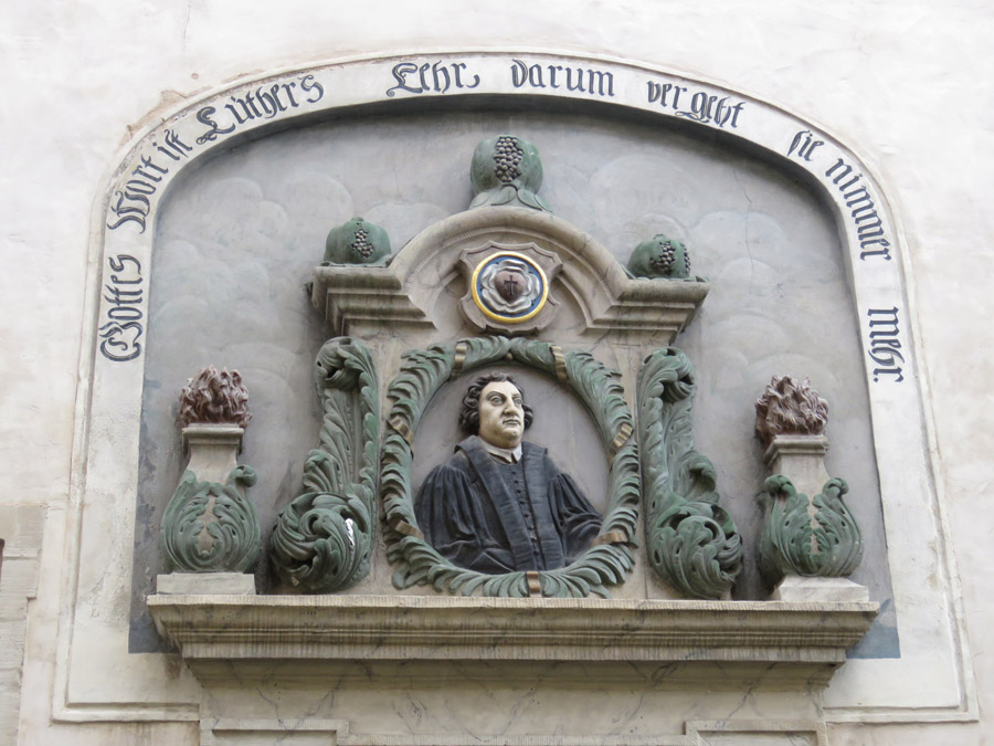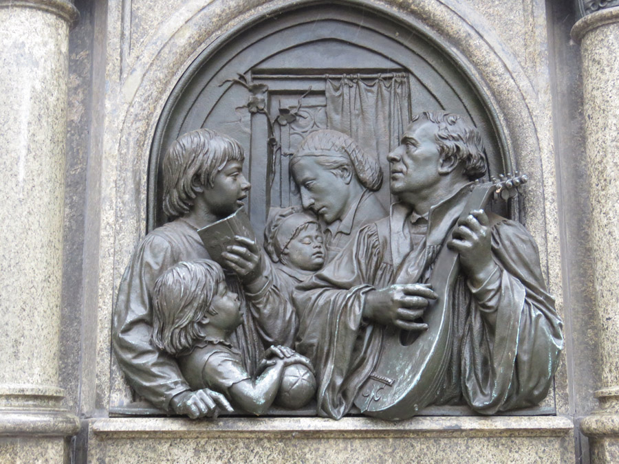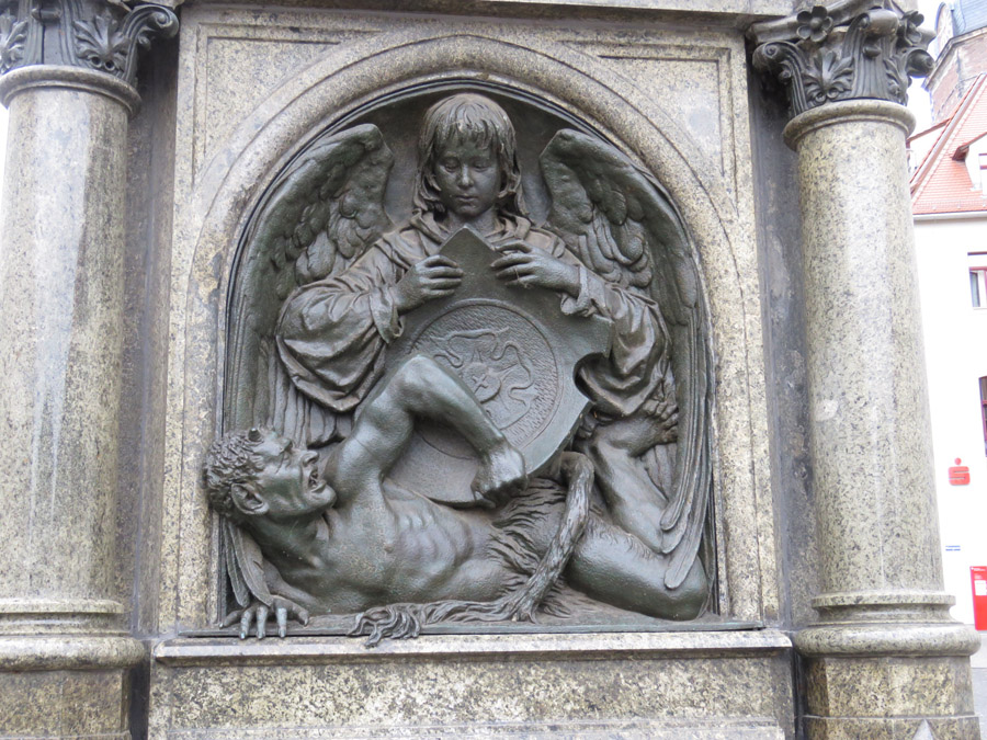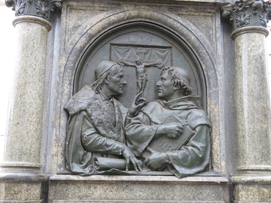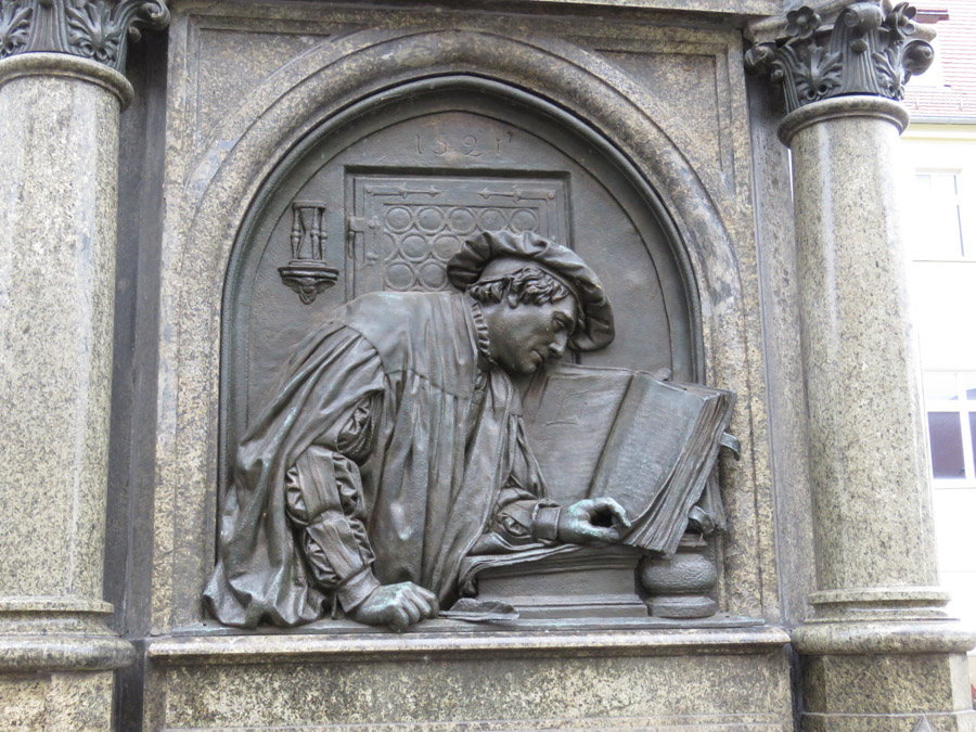Lutherbrunnen, der Stationen aus Luthers Leben darstellt.
