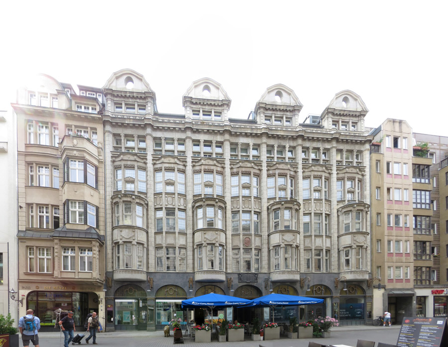 Nikolaiplatz enthält ansehnliche Bauwerke. Die "Palme" steht zum