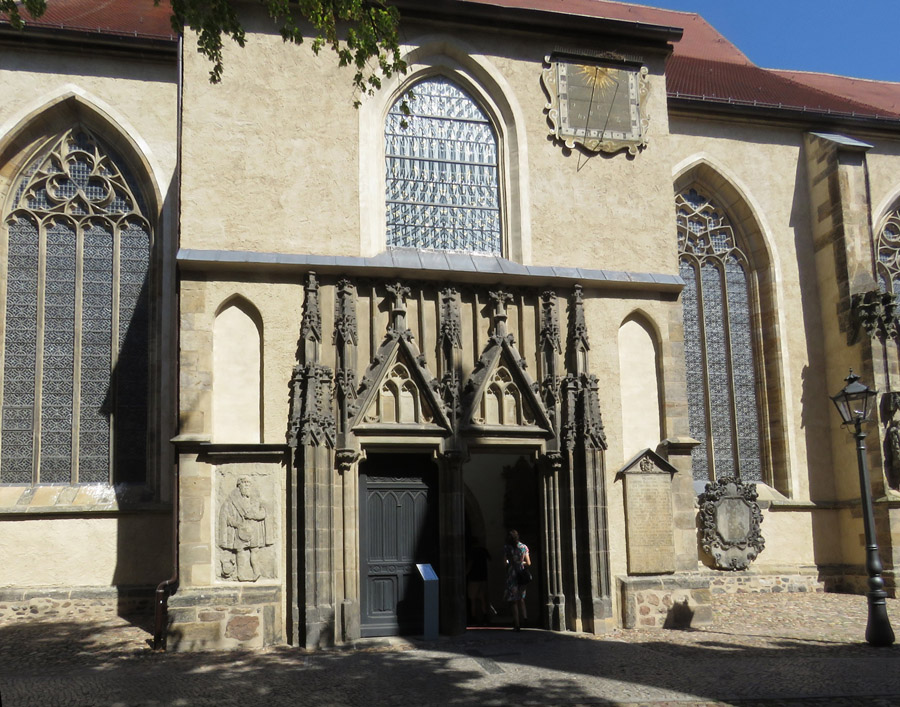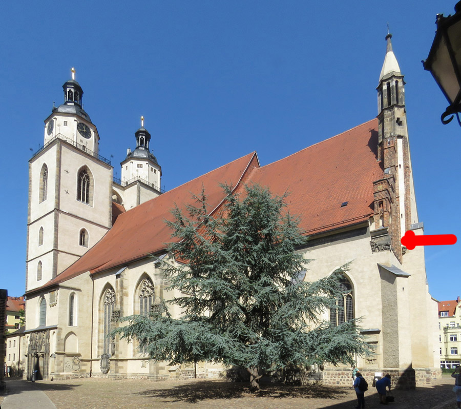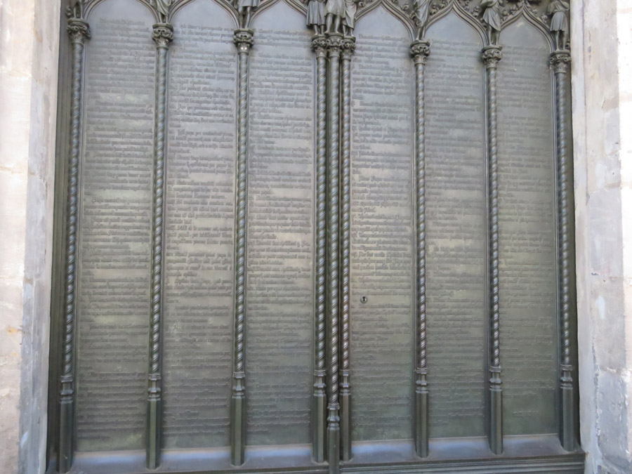 Holztür. Hier soll Martin Luther am 31. Oktober 1517 seine 95