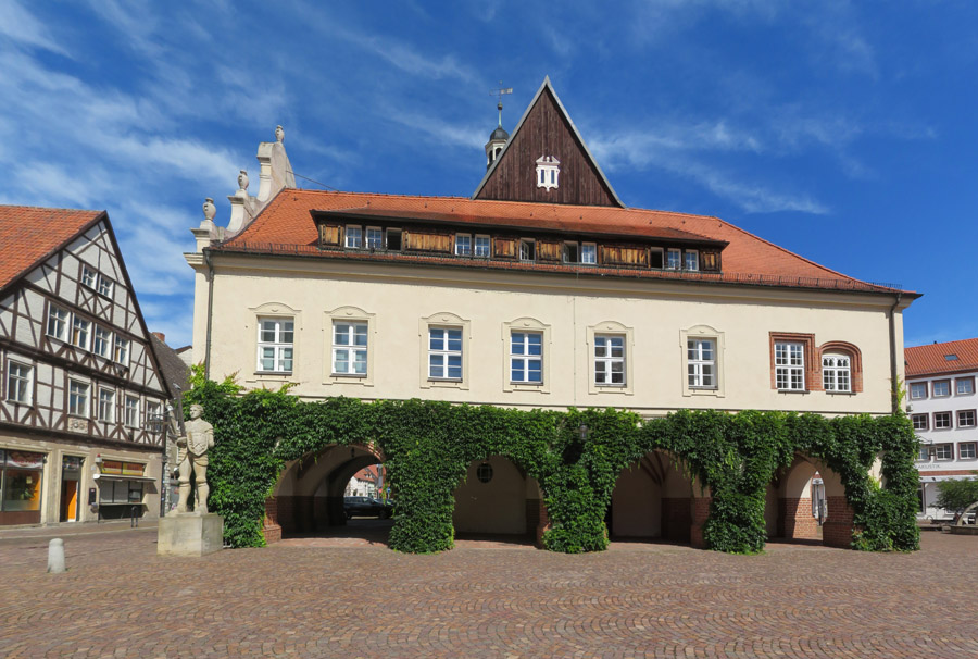 Im Stadtzentrum liegt das Rathaus. Nach einem Stadtbrand wurde es