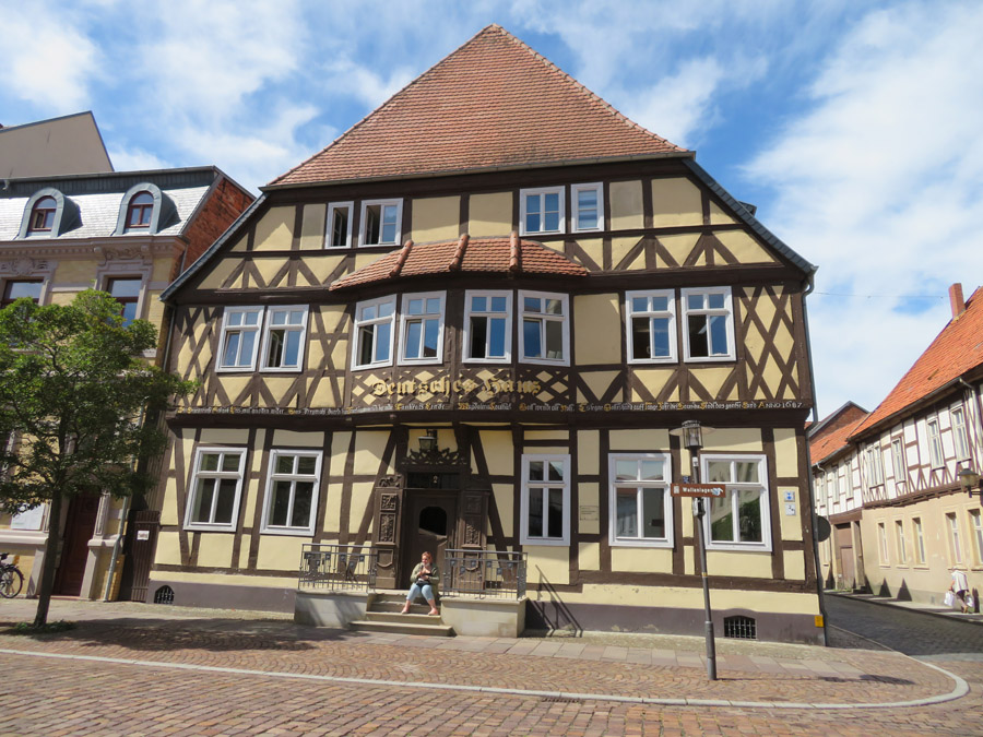 Gegenüber steht dieses Haus mit dem Hinweis unter dem Fenster: "328 Jahre versteckt