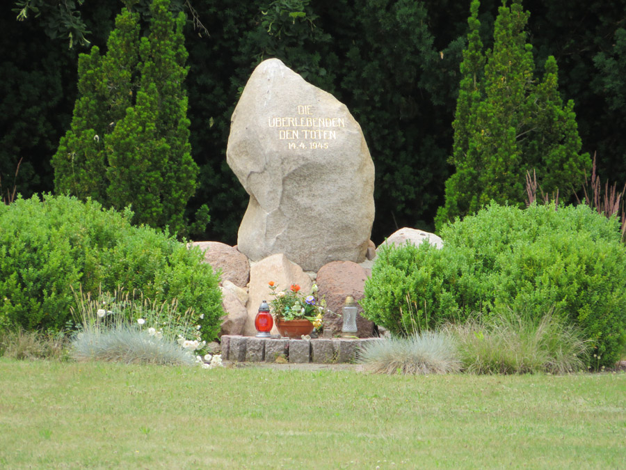 Zentraler Gedenkstein zwischen den Kreuzen.