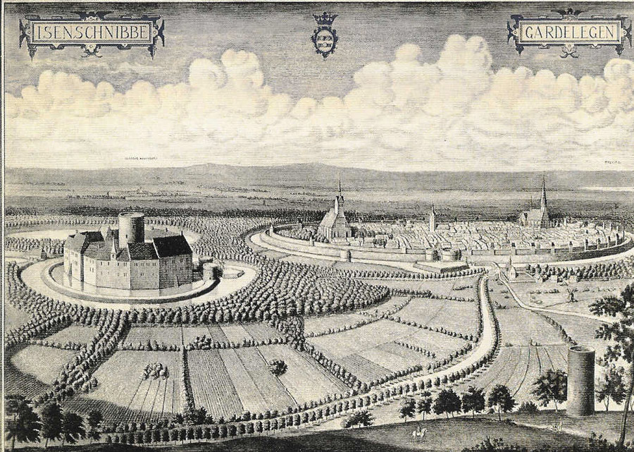 Isenschnibbe und Stadt Gardelegen um 1600 – Zeichnung von Anco Wigboldus