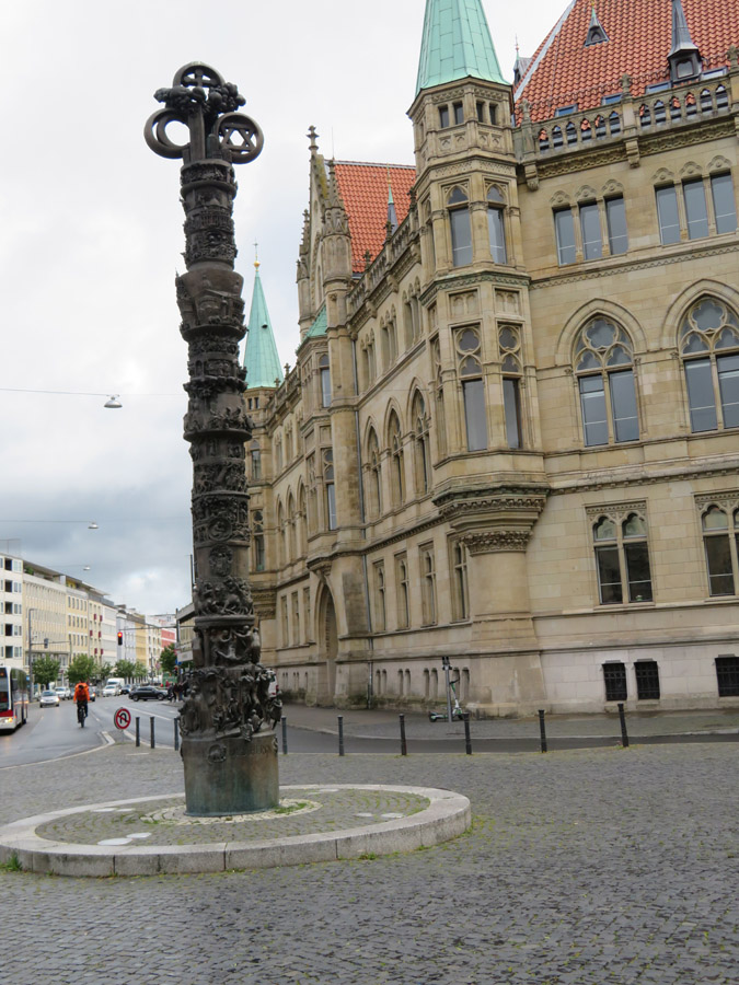 Burg hat Prof. Jürgen Weber eine Säule aufgestellt, auf der Szenen