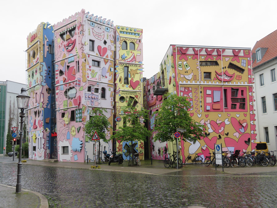 heftig umstrittene Bürokomplex von James Rizzi fertiggestellt. Heute
