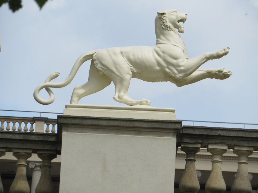 schließen zwei Panther-Figuren ab. Panther sollen den Weingott Dionysos