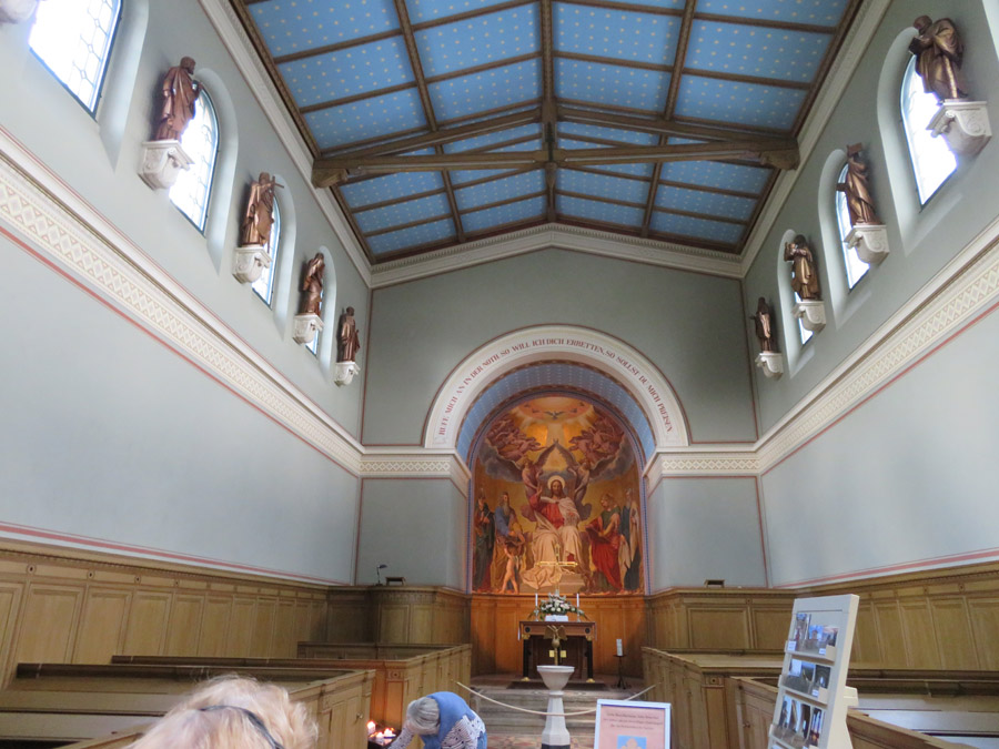 relativ schlicht gehalten. Nur im Altarraum gibt es ein Frescobild.