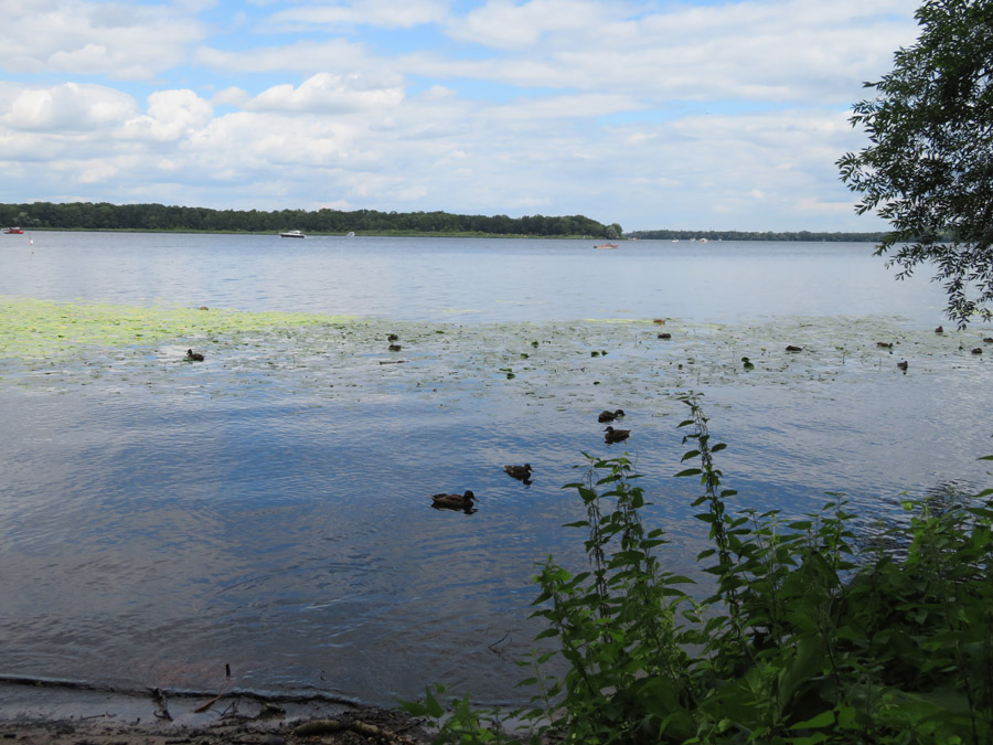 verlandet der See im seichten Wasser mit Seerosen in Caputh