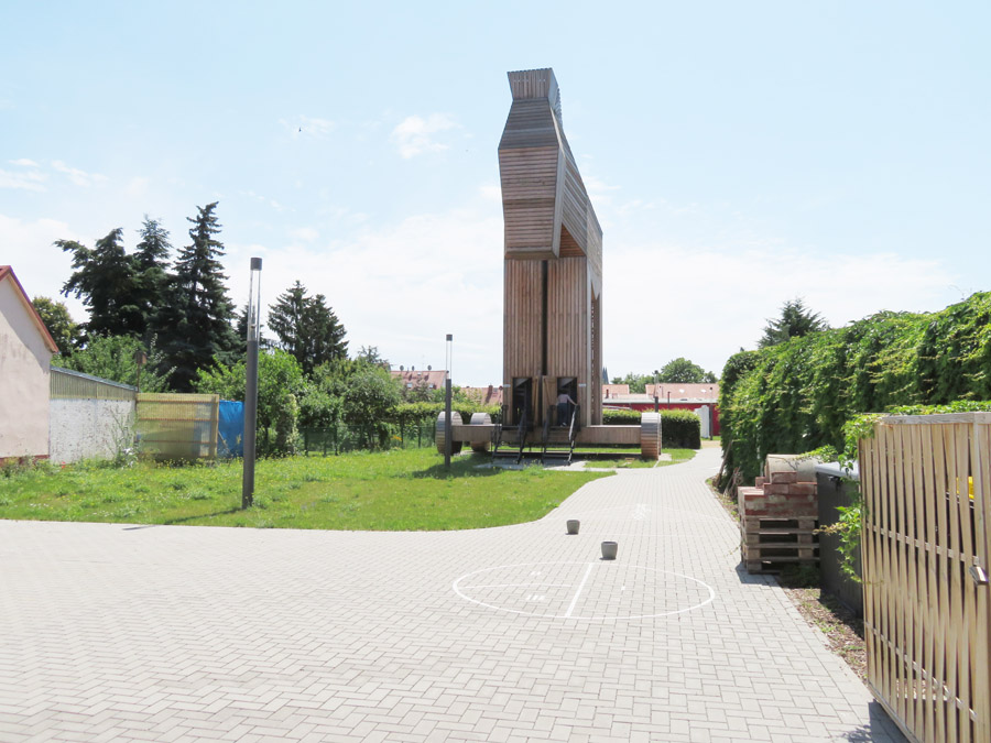 Schadewachtenstraße hinter dem Tor ist gerade Baustelle. Der Name weist