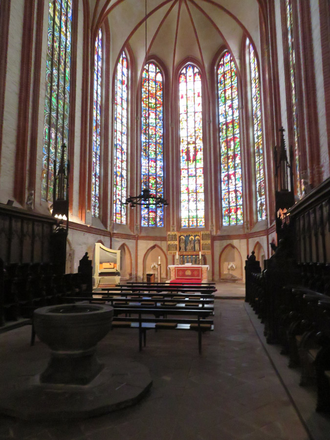 Fenstern mit Glasmalereien aus dem 14. und 15. Jahrhundert.