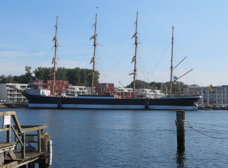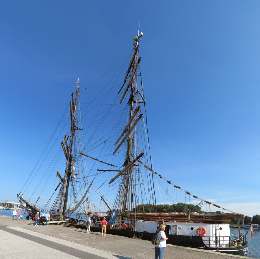 Segelschiff Roald Amundsen. Es wartet auf Teilnehmer am Segeltraining.