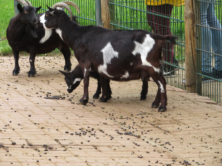 wird in einem Gehege neben dem Spielplatz gehalten und kann gestreichelt