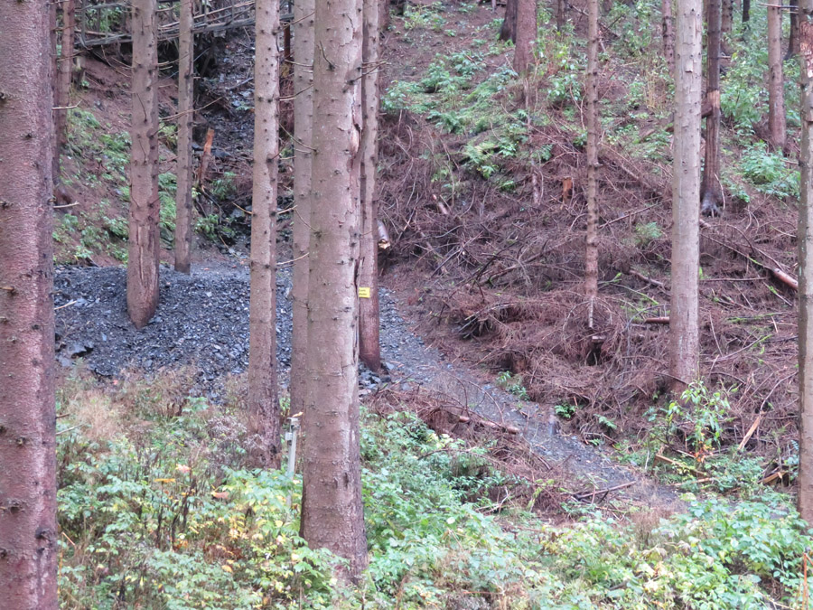 also in die Grube rein. Die Fichtenstämme wurden im Bergbau bevorzugt,