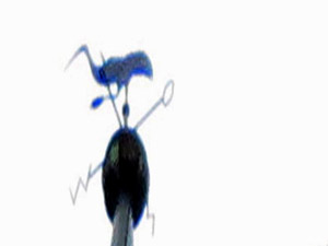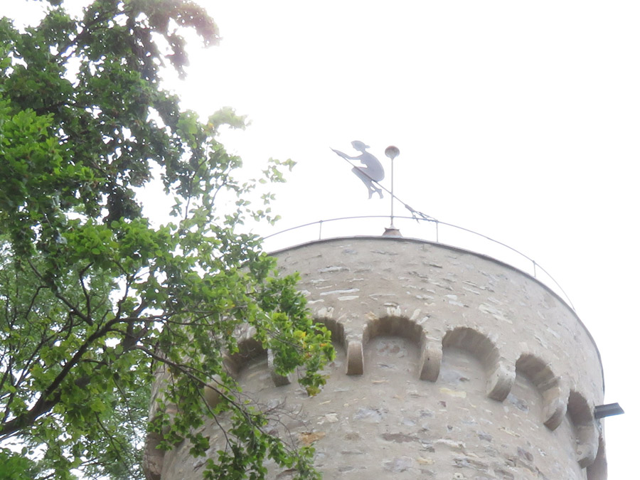 Der Kranich als Wetterfahne weist auf einen sagenhaften Wecker
