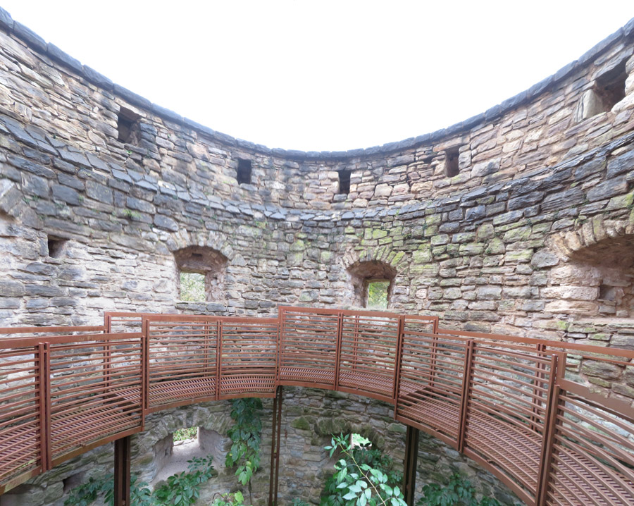 Der Beysesche Turm an der Luisenpromenade ist zur Stadt hin völlig offen, damit man eingedrungene Angreifer