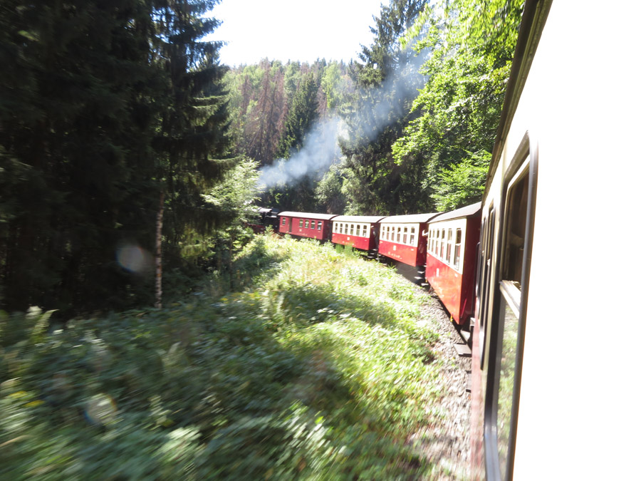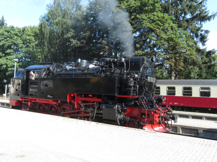 läuft auf Gleis 1 die Brockenbahn ein und bleibt stehen.