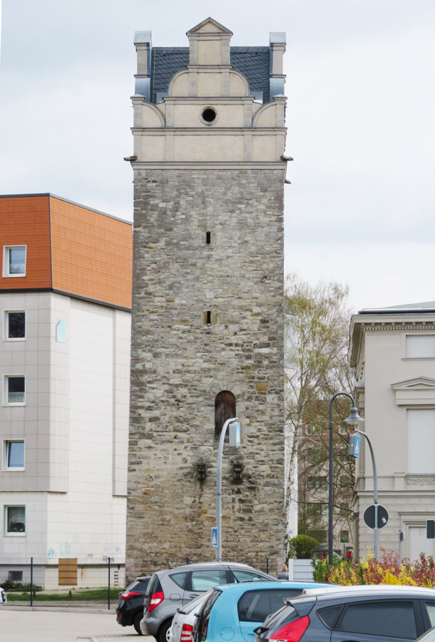 Füllenturm, wegen seiner früheren Wetterfahne auch Hasenturm genannt.