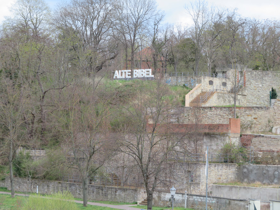 Landeskrankenhaus. Leider liegt die Gedenkstätte auf der Saale-Seite der