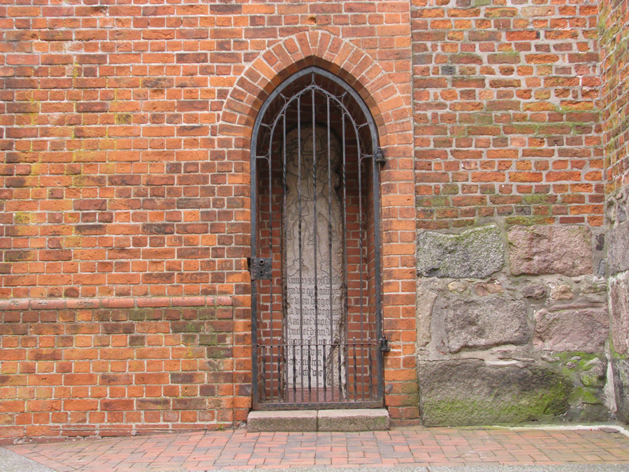 Westportal der Nikolai Kirche in Mölln wurde deshalb ein Gedenkstein