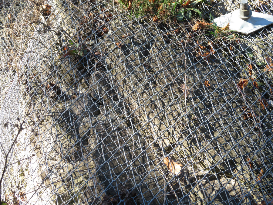 Sicherheitsgründen ist der ganze Aufschluss mit einem Maschendrahtzaun