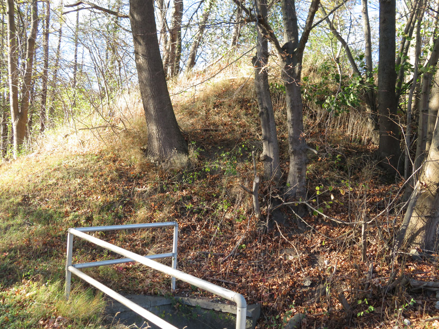 Deich, trug früher Schienen. Es war der Bahndamm, der das Eisenerz nach