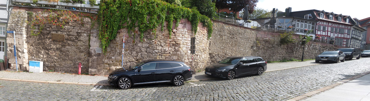Die Stadtmauer am Barfüßer Tor. In großen Abschnitten ist die Mauer auch heute