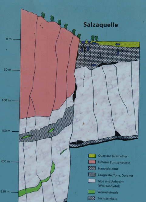 Buntsandstein (an der Oberfläche und darunter Gipsschichten besteht).